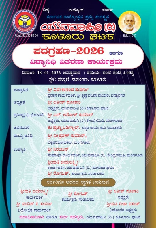 ಯುವವಾಹಿನಿಯ 36 ನೇ ವಾರ್ಷಿಕ ಸಮಾವೇಶವು ಬಂಟ್ವಾಳದ ಬೆಂಜನಪದವು ಶುಭಲಕ್ಷ್ಮೀ ಸಭಾಂಗಣದಲ್ಲಿ ದಿನಾಂಕ 24.12.2023 ರಂದು ಸಂಪನ್ನಗೊಂಡಿತು. ಯುವವಾಹಿನಿಯು ವಿದ್ಯೆ ಉದ್ಯೋಗ ಸಂಪರ್ಕದ ಜೊತೆ ಸಮಾಜದ ಅಭಿವೃದ್ಧಿಗಾಗಿ ರಾಜಕೀಯ ಪ್ರಜ್ಞೆಯನ್ನು ಬೆಳೆಸುವ ಅಗತ್ಯವನ್ನು ಕೂಡ ಹೇಳುತ್ತದೆ ಹಾಗೂ ಕಟ್ಟಕಡೆಯ ವ್ಯಕ್ತಿಗಳನ್ನು ಮುಖ್ಯವಾಹಿನಿಗೆ...
