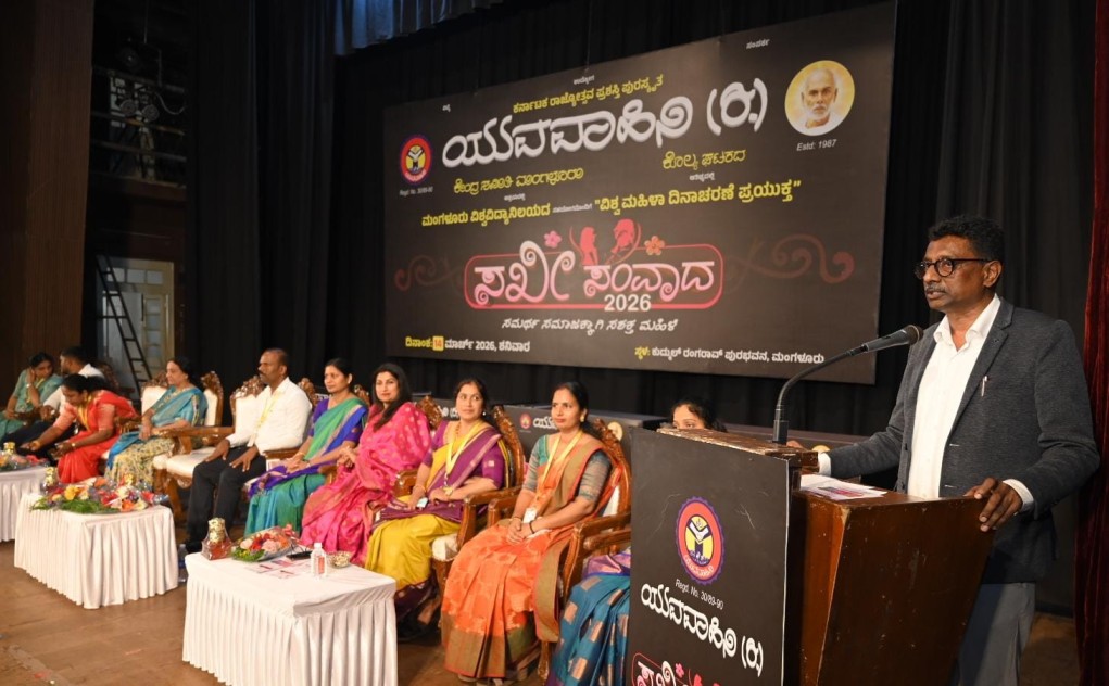 ಯುವವಾಹಿನಿ (ರಿ.) ಕೇಂದ್ರ ಸಮಿತಿ ಮಂಗಳೂರು ಇದರ ಆಶ್ರಯದಲ್ಲಿ, ಯುವವಾಹಿನಿ (ರಿ.) ಕೊಲ್ಯ ಘಟಕದ ಆತಿಥ್ಯದಲ್ಲಿ ಹಾಗೂ ಮಂಗಳೂರು ವಿಶ್ವವಿದ್ಯಾನಿಲಯದ ಸಹಯೋಗದಲ್ಲಿ ವಿಶ್ವ ಮಹಿಳಾ ದಿನಾಚರಣೆ ಪ್ರಯುಕ್ತ ಆಯೋಜಿಸಿದ್ದ “ಸಖೀ ಸಂವಾದ – 2026” ಸಂವಾದ ಕಾರ್ಯಾಗಾರವನ್ನು ಉದ್ಘಾಟಿಸಿ ಅವರು ಮಾತನಾಡಿದರು.